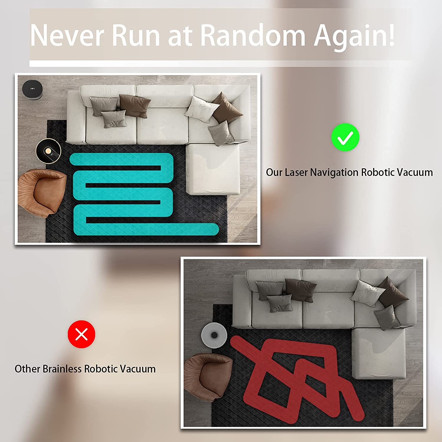 V980 Plus Robot Vacuum با سیستم ناوبری لیزری با دقت بالا، خانه شما را با دقت اسکن و نقشه میکشد و مسیر بهینه را با Z شکل برنامهریزی میکند. هرگز دوباره به صورت تصادفی اجرا نکنید!