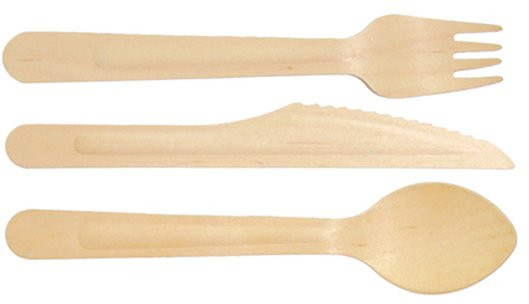قاشق چوبی کارد و چنگال یکبار مصرف دوستدار محیط زیست green planet