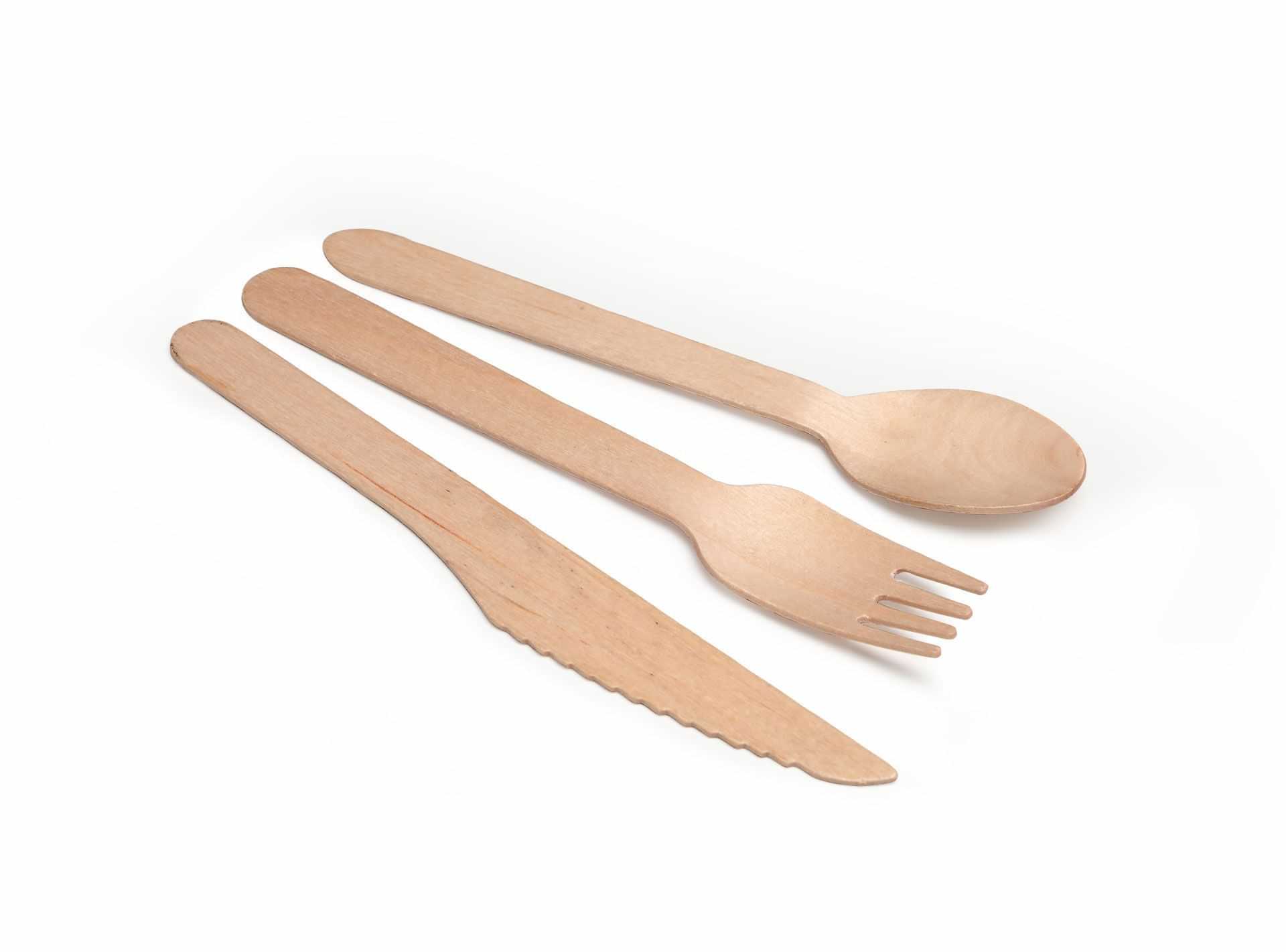 قاشق چوبی کارد و چنگال یکبار مصرف دوستدار محیط زیست green planet