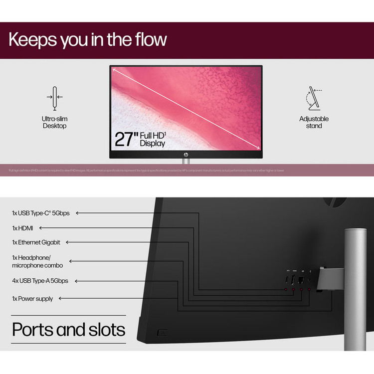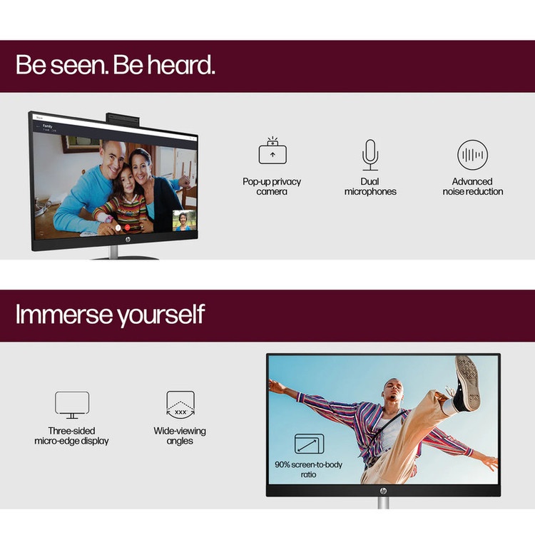 توضیحات صفحه نمایش : صفحه نمایش غیر لمسی 60.5 سانتی متری / پنل IPS / استاندارد three-sided micro-edge(حاشیه بسیار کم) / روکش مات ضد انعکاس نور / روشنایی 250 نیتس / گامت رنگی 72% NTSC / نسبت بدنه به صفحه نمایش ۹۸.۱۶%